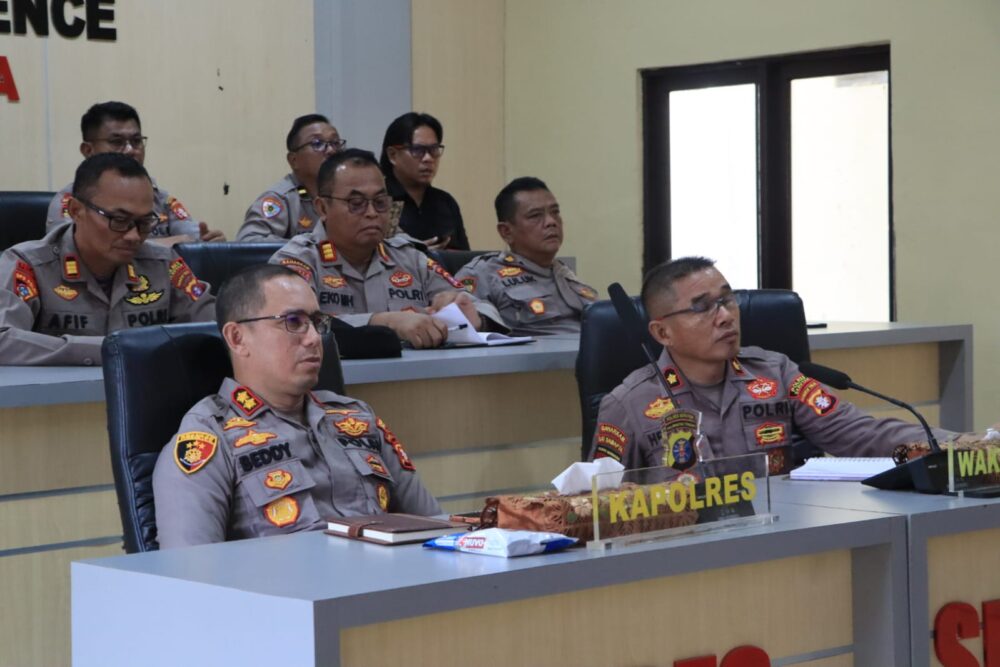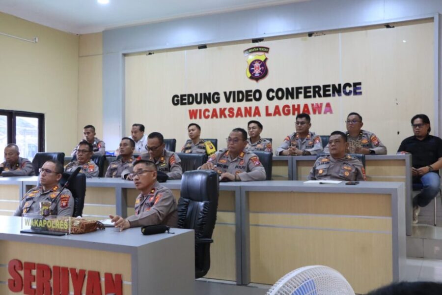 SERUYAN, ProBorneo.id – Kapolda Kalimantan Tengah Irjen Pol Iwan Kurniawan, S.I.K., M.Si., didampingi Wakapolda Kalteng Brigjen Pol Drs. Yosi Muhamartha, memberikan arahan kepada seluruh Pejabat Utama (PJU) Polda Kalteng dan jajaran Kapolres, termasuk Polres Seruyan, melalui video conference di Gedung Vicon Wicaksana Leghawa Polres Seruyan, Rabu (04/03/2026).