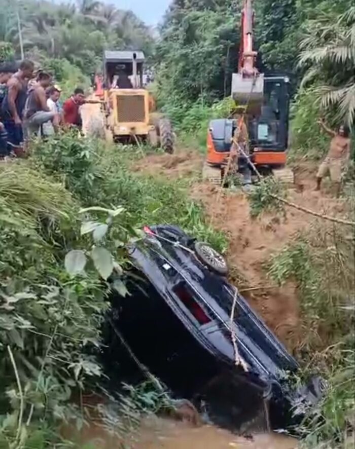 “Mobil tidak mampu menanjak di lokasi kejadian di jalan berbukit dan rusak. Saat berada di tanjakan diduga kendaraan tersebut kehilangan tenaga, kemudian mundur dan tergelincir ke parit,” terangnya.