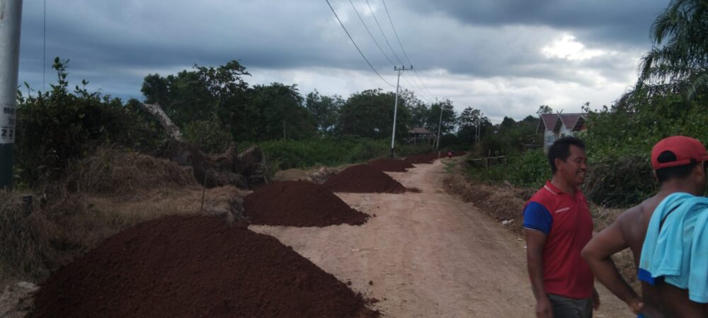 Yudi shara menambahkan, pengerjaan jalan tersebut sepanjang 2 KM dengan system pengerjaan penimbunan menggunakan laterit dan berkolaborasi dengan meminta bantuan dari pihak perusahaan melalui program CSR.